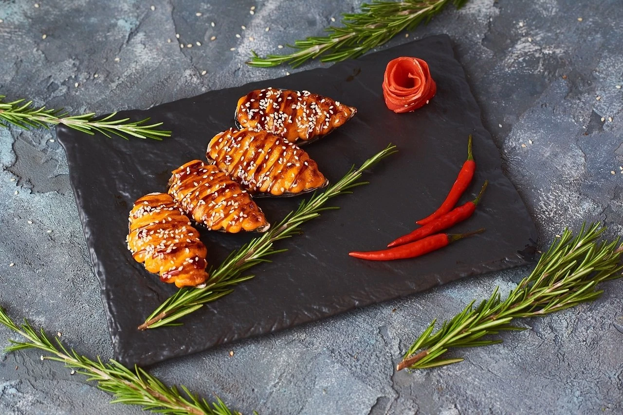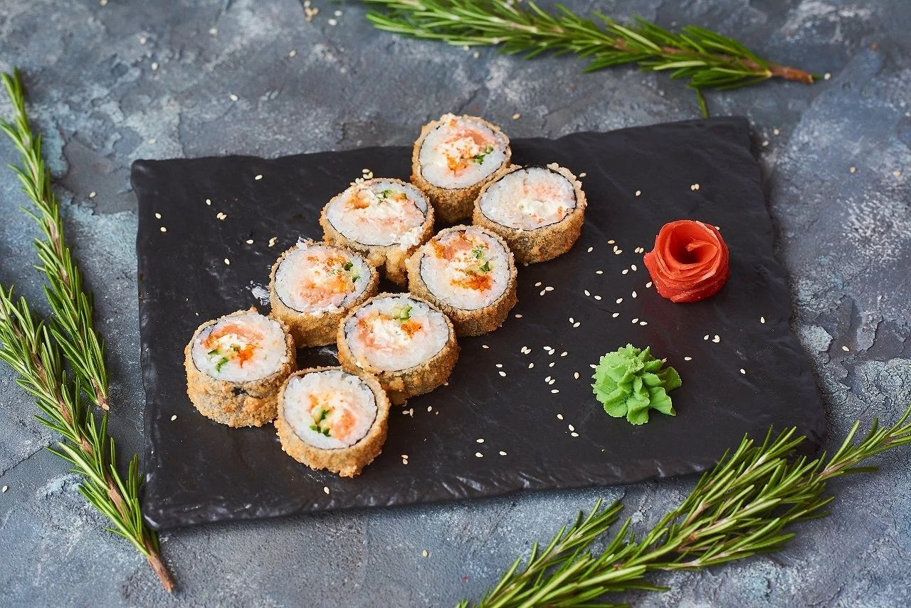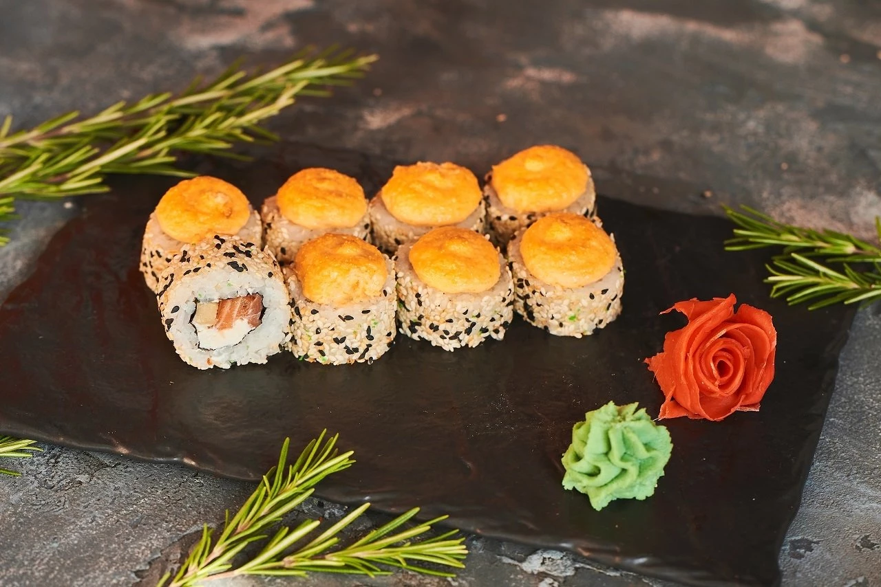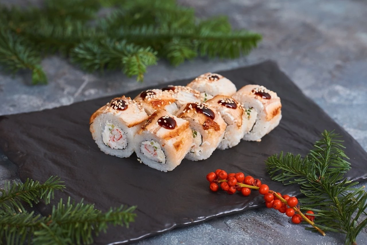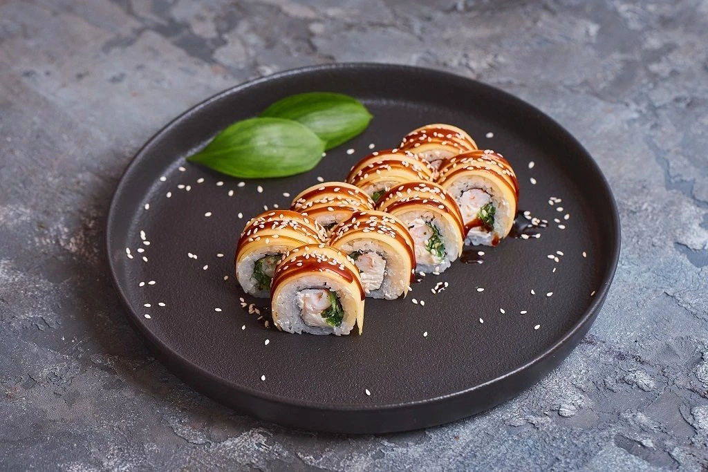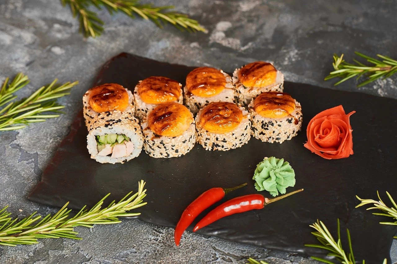 Запеченный ролл маки окунь