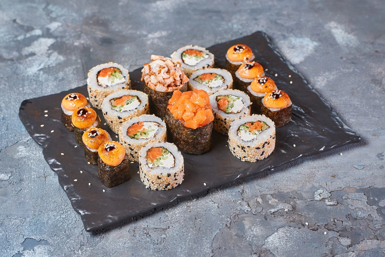 Вкусные, свежие роллы! Приготовили точно ко времени. Всё очень вкусно! Благодарим ❤️